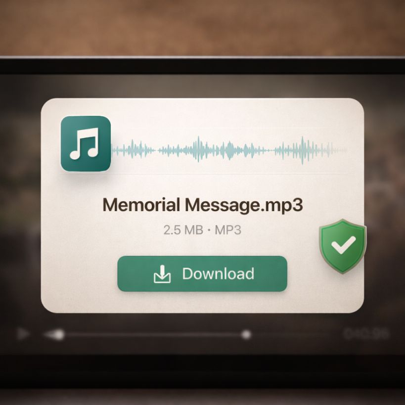 Vocal Heirloom is for moments when studio recordings were never created. We work with imperfect, everyday audio and turn it into a single finished MP3 message in the voice you remember. No subscriptions, no technical setup, and no voice model delivered.